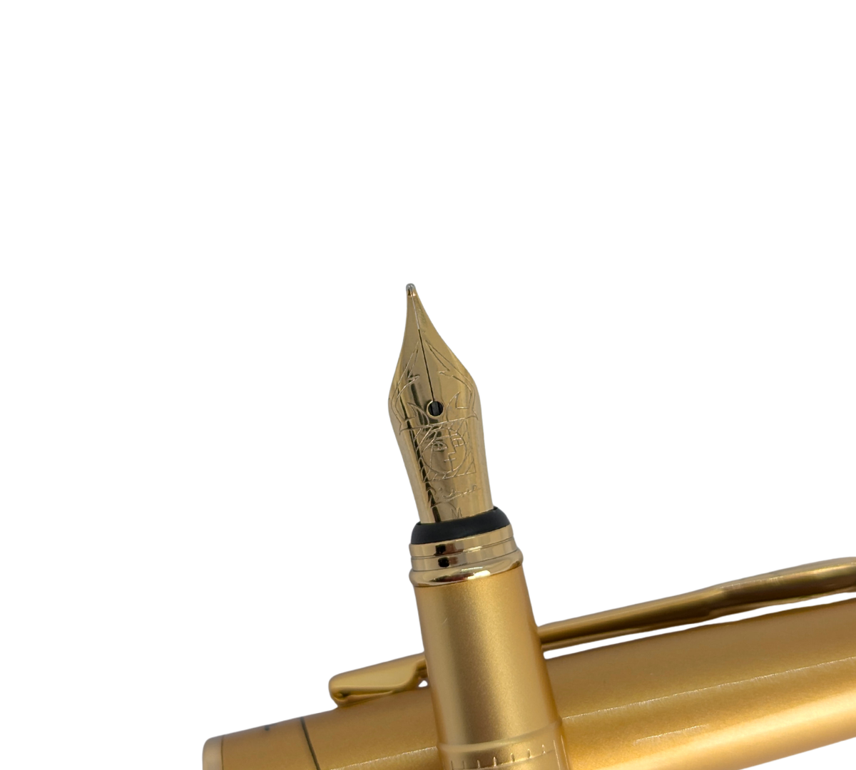 The pen features a two-toned or engraved stainless steel nib, designed for a smooth and controlled ink flow.