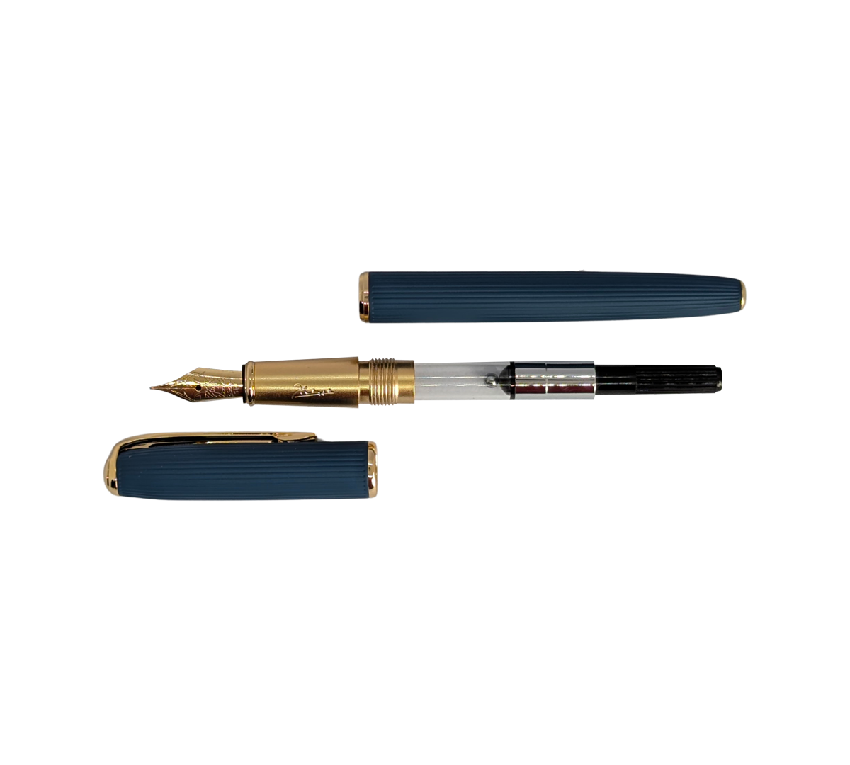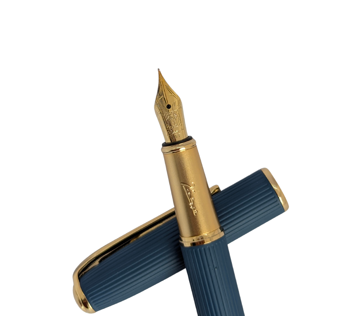 Sleek Gold Accents: The blue and black bodies are complemented by a polished gold-plated clip and central band.